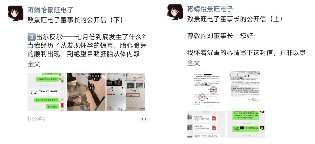 一邊是實控人通過減持、分紅巨額套現(xiàn),另一邊是公司陷入解聘孕期員工的輿論風(fēng)波。2025年9月19日,據(jù)長江商報、深圳商報旗下的讀創(chuàng)等多家媒體報道,景旺電子前證代蔣靖怡在社交媒體發(fā)布一封題為《致景旺電子董事長的一封信》的公開信。