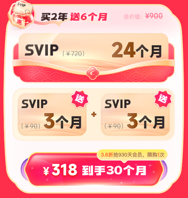 價值900元的迅雷超級會員雙年卡套餐,主打“省心長線囤貨”,活動期間超值特惠,僅需318元即可獲得“24個月基礎(chǔ)超級會員+6個月贈送超級會員”,一次性到手930天迅雷超級會員,折算每月僅需10.6元,每日價格低至0.35元。